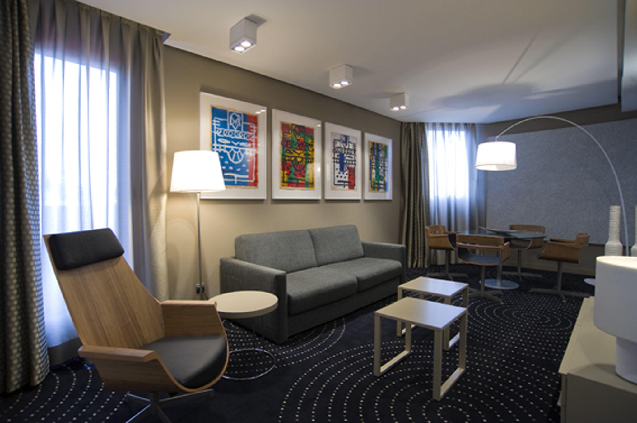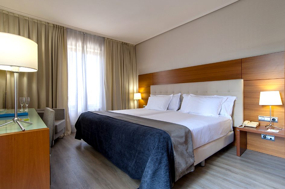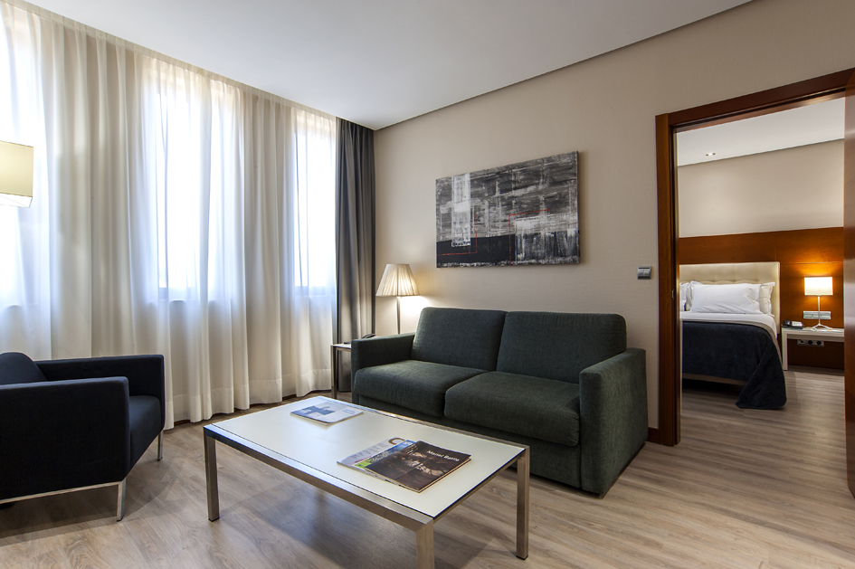 La Suite de nuestro hotel en San Sebastián se compone de dos ambientes separados y espaciosos que invitan al descanso y al disfrute. El salón es muy confortable y está equipado con un amplio sofá, mesa auxiliar con sillas y una TV de tecnología led con conexión satélite a diferentes canales temáticos e internacionales. Tiene un baño interior independiente.