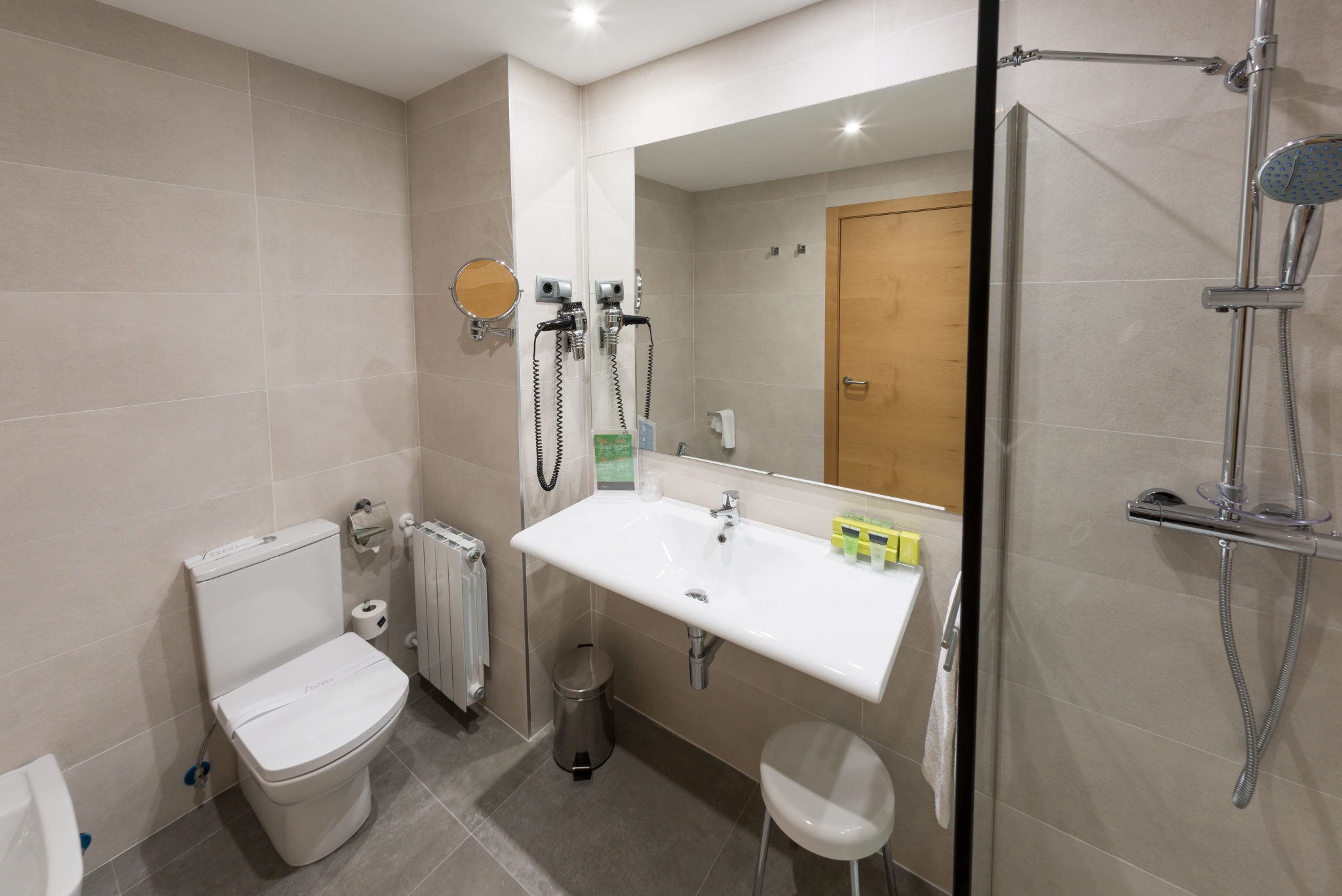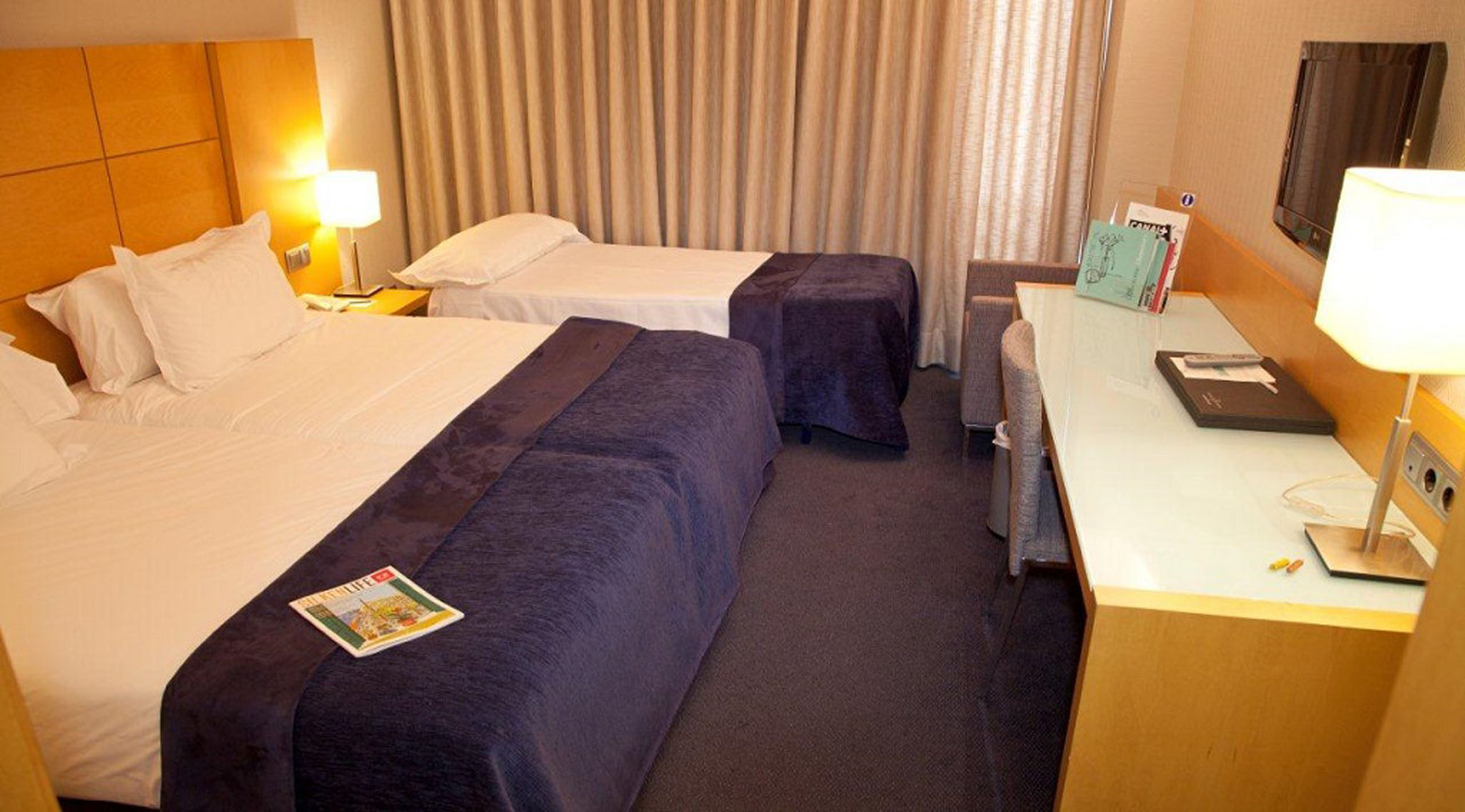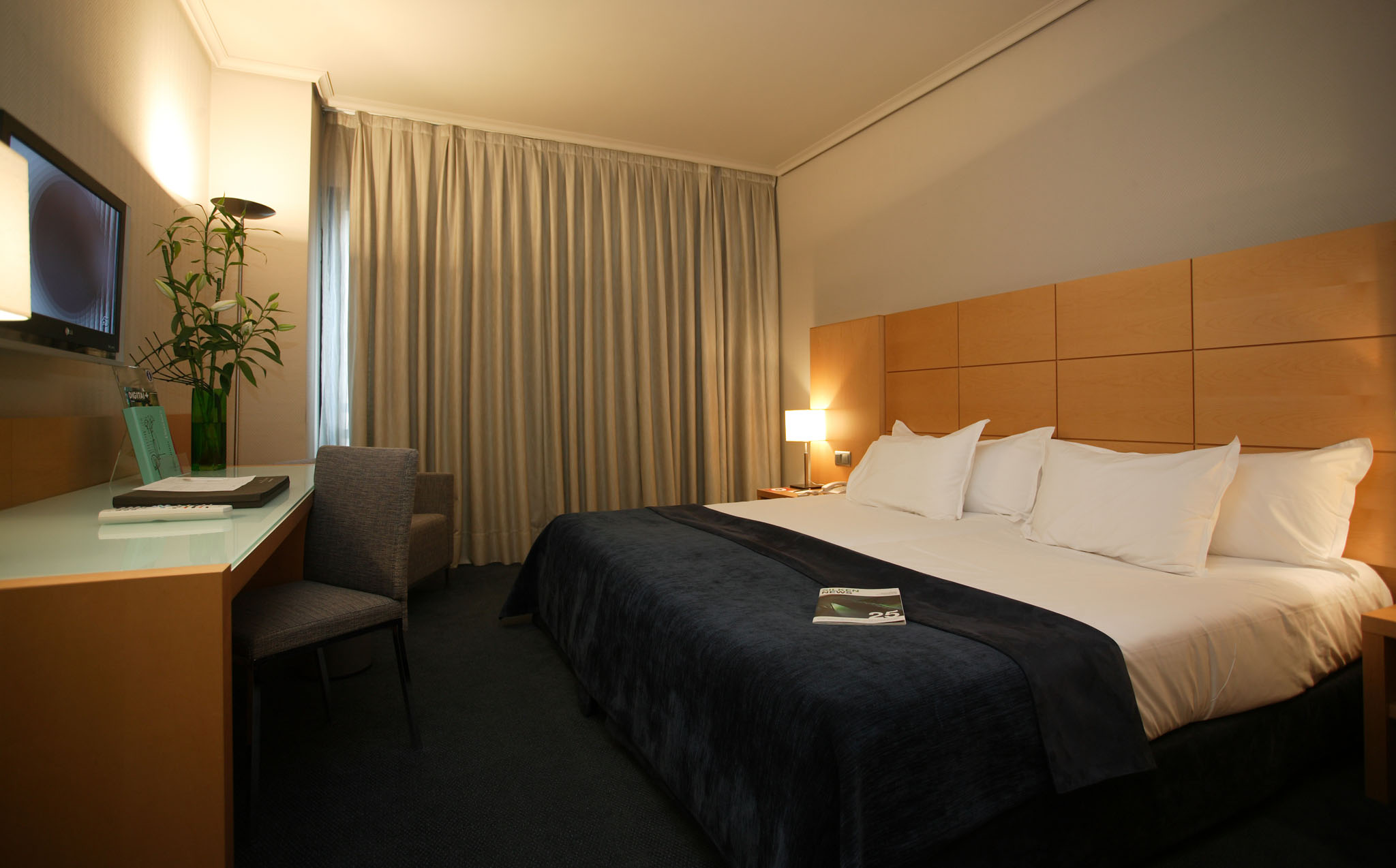 Para tu máximo confort cuentan con cama de matrimonio de 1,80m x 2,00m, amplio escritorio, conexión Wi-Fi gratuita, TV de plasma de 42" con canales de diferentes temáticas y nacionalidades, aire acondicionado y calefacción de control individualizado, mini bar, teléfono y caja fuerte.