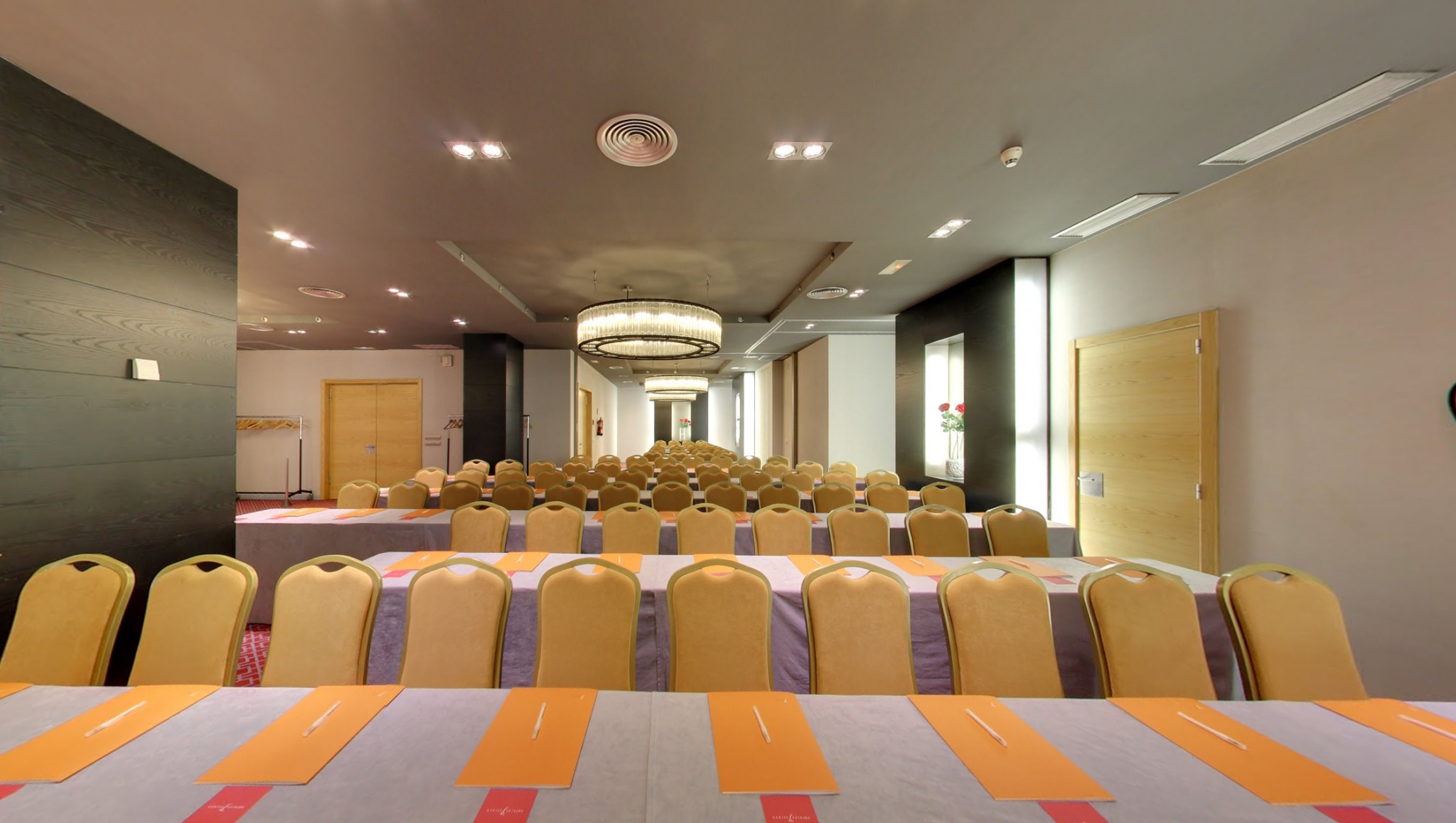 Contamos con cuatro salones panelables, capaces de unirse para convertirse en el salón Coliseum, con una capacidad de hasta 250 personas (consulta la ficha técnica de a continuación para más información). La decoración y el completo equipamiento de medios audiovisuales, así como un servicio muy profesional nos permiten organizar todo tipo de eventos en el centro de la ciudad como reuniones de empresa, comidas de negocios, presentaciones, etc., y que salgan de una manera inmejorable.