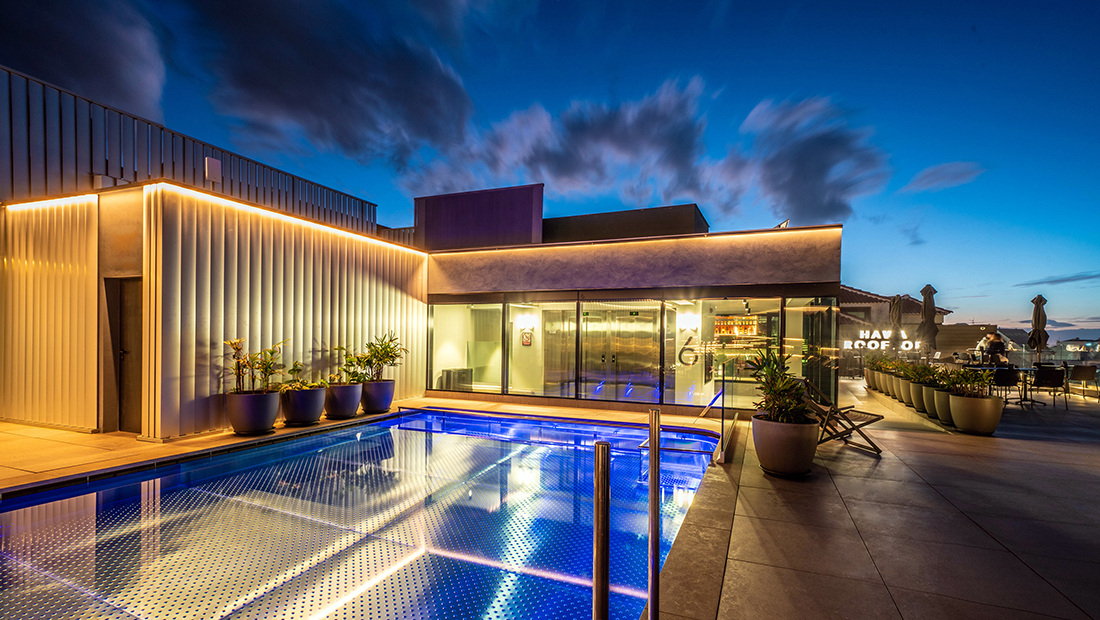 Ven a tomar algo o tapear. Nuestro rooftop está abierto a partir de las 10:00 hr: desde las 10:00hr y hasta las 18:00 hr encontrarás abierta la piscina y la barra para clientes alojados. De 12:00hr a 16:00 hr está abierto el Snack Bar para clientes alojados. Y de 18:00hr a 00:00hr (de domingo a jueves) y hasta la 01:00hr (los viernes, sábados y vísperas de festivos) está abierta la barra del HAWA Rooftop para locales y clientes.